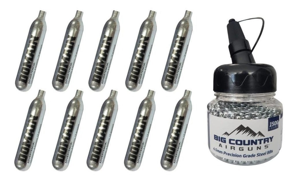 Pack 10 Tanques Co2 Domain De 12g Con 1500 Balines 4.5mm
